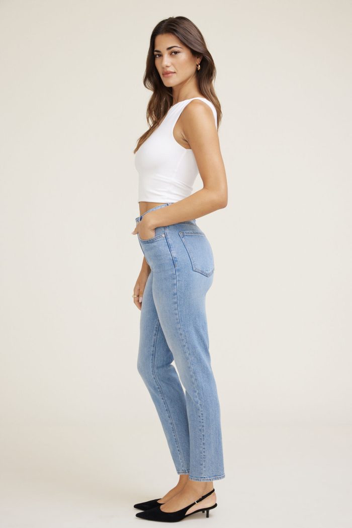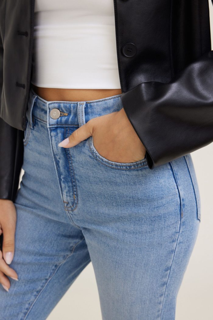 Frenchie is our signature slim jean. It sits right at your waist and is fitted from the hip down to your ankle for a slim look that accentuates your curves. Made from our stretch denim, it’s soft and extra stretchy for comfort all around.