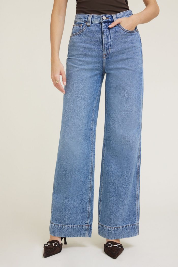 Lennon is the leg lengthening jean we can’t get out of our heads. It sits high above your waist and has a fitted seat that extends straight into a wide leg from the thigh down to the hem. Made from our rigid denim, it molds to your body over time without losing its shape.